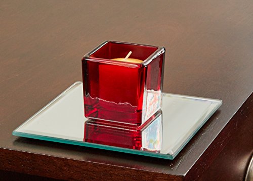 5 Inch Square Mirror Candle Plate with Bevelled Edge set of 12