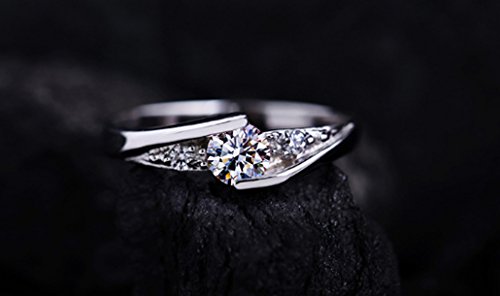 -. Title : Dehang Damen-Ring klassic Solitär 925 Sterling Silber Zirkonia mit zufälligem Geschenk Etui-Gr.10/13/15