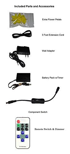 - This floral bouquet includes a 3V DC power supply with wall plug, component switch element, 3 foot extension cord, battery power pack with a 6 hour timer switch, and a remote dimmer switch. The lamp can be powered by the battery pack or by the included wall plug.