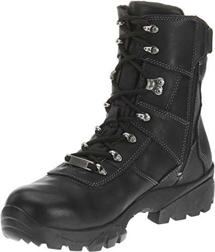 Amazon.com Product Description Serious work and serious play demand serious footwear and Harley-Davidson delivers with this rugged boot. The durable leather upper features lace-up styling and a side zipper for a perfect, easy fit, while metal accents add handsome detail and appeal. A round toe and rubber lug sole offer serious comfort matched with total stability.