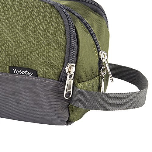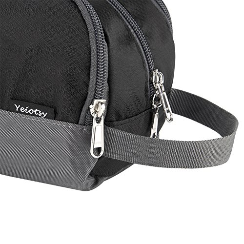 -. Brand : Yeiotsy -. Department : unisex-adult (lage only) -. Feature : Material: Premium waterproof/durable/Ultra-light nylon fabric + breathable mesh + SBS zippers / Size: 9.84* 5.51*5.11 inches; Weight: 3.53 oz / The bag is ultra-light that you won't even notice you have it with you even when in use / It is small when packed up and can be tucked away almost anywhere while it has a large capacity to carry almost all your toiletries need for a small trip. / All the three compartments have zippers, the mesh pocket on the one side is visible and breathable; The convenient strap on the one end is perfect for hanging. -. PackageQuantity : 1 -. ProductGroup : Apparel -. ProductTypeName : LAGE -. Size : Small -. Title : Yeiotsy Small Travel Toiletry Bag Super Light for Overnight Trip