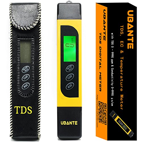 UBANTE Professional Quality TDS, EC & Temperature Meter, Water Quality Test Meter,0-9990ppm.Accurate and Reliable Water Test Meter. Ideal for Drinking Water, Aquariums. Premium Protective Leather Case