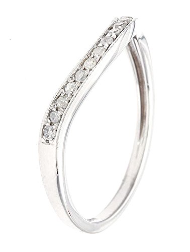 -. Title : 10k White Gold Curved Diamond Wedding Band Guard (1/8 cttw, I-J Color, I2-I3 Clarity)