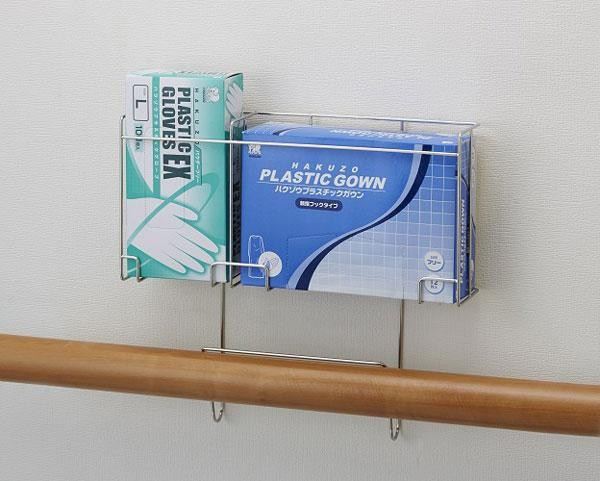 壁等に設置できない場所でも、下側を手すりに差し込むことで、傷つけずに設置できます。製造国:日本 素材・材質:ステンレス 商品サイズ:39.0×42.0×9.0cm ※サプライヤー直送品 ご注文後7~8営業日後の出荷となります【商品名】ハクゾウメディカル PPE製品用ホルダーSE(手すり用タイプ) 3連タイプ 3904991