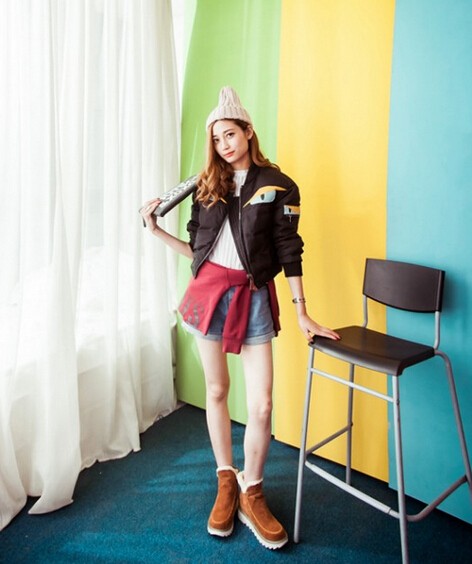 2015 winter new casual round flat Duantong frosted with snow boots flat sleeve solid comfort
