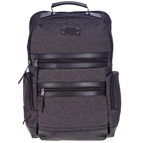 -. Title : Renwick Business Backpack with Genuine Leather Trim, Black Denim
