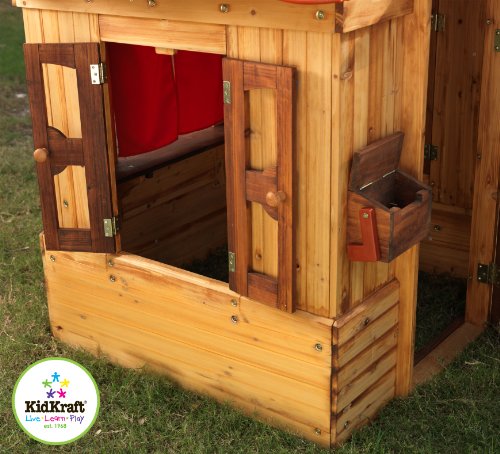 -. Binding : Toy -. Brand : KidKraft -. Color : Red -. Department : Unisex -. EAN : 0611104973833 -. Feature : Door and wide windows that open and close / Large enough that multiple children can play at once / Made of weather-resistant wood / Packaged with detailed, step-by-step assembly instructions -. IsAdultProduct : 0 -. IsAutographed : 0 -. Label : KIDKRAFT -. Manufacturer : KIDKRAFT -. Model : 00176 -. MPN : 00176 -. NumberOfItems : 1 -. PackageQuantity : 1 -. PartNumber : 00176 -. ProductGroup : Toy -. ProductTypeName : TOYS_AND_GAMES -. Publisher : KIDKRAFT -. Size : 49.1"L x 43.6"W x 59.2"H -. Studio : KIDKRAFT -. Title : KidKraft Outdoor Playhouse -. UPC : 022791536698 -. Warranty : 90 day warranty against manufacturer defects