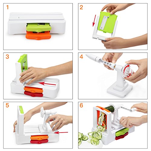 2018 New Design with Unmatched Value: Don't waste your hard earned money on other old & weak blades designs. Out new blades are guaranteed to be markedly stronger than any of the others on the market (100% stainless Steel). 3 different colors of the blades for u easy to use and distinguish. Orange - Spaghetti Cut (1/8- in spiral), Red - Fettuccine Cut (1/4 - in spiral), Green - Ribbon Cut / Individual Slicers.