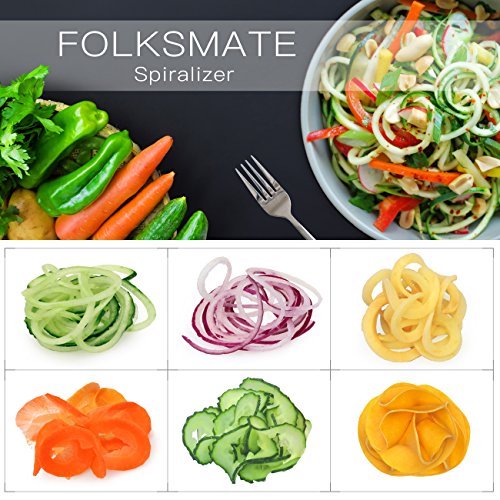 Spiralizer Vegetable Slicer, Folksmate Mandoline Slicer with Strong Stainless Steel Spiral 3-Blade, Best Veggie Pasta Spaghetti Make for Low Carb / Paleo / Gluten-Free
