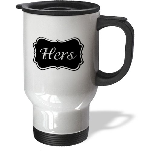3dRose tm_112860_1 Hers Part of His and Hers Pair for a Romantic Couple Black and White Retro Vintage Label Travel Mug, 14-Ounce, Stainless Steel