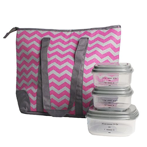 Fit & Fresh Providence Insulated Lunch Bag with Reusable Container Set (Berry Chevron)