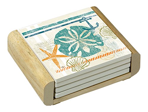 Counter Art Absorbent Coasters Nautical Brights In Wooden Holder, Set of 4