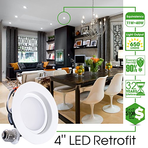 ✔ CONSERVE ENERGY: Using SUNCO’S LED Recessed Lighting Retrofit can reduce energy use by as much as 90%. Improving energy efficiency can reduce emissions that contribute to global warming, mercury contamination in lakes, acid rain, and nuclear waste. Super BRIGHT light, SAVES energy, and LOWERS electric costs: 11W (40W Halogen Equivalency), LASTS over 32 years, SAVES $108 per lamp.