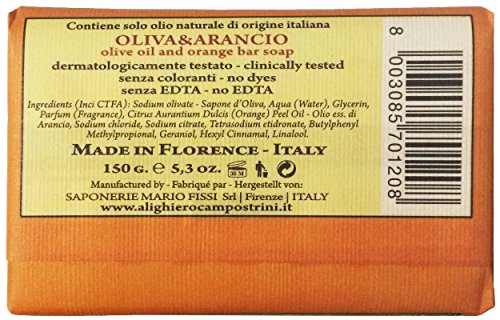 Alighiero Campostrini: "Oliva-Arancio" Bar Soap, "100% Olio d'Oliva" Collection * 5.3 Ounces (150g) Package * [ Italian Import ]