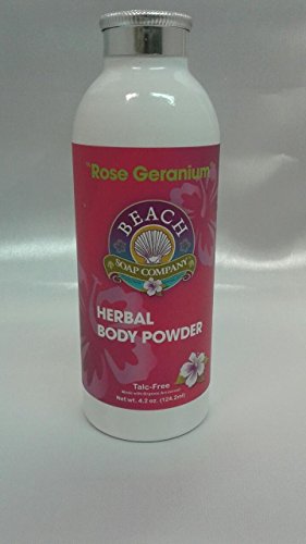 Talc Free Organic Body Powder, Rose Geranium Scent. Made and sold by Beach Organics. 4.2 oz.