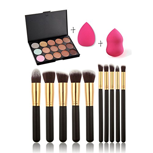 FantasyDay Professional 15 Colors Contour Face Cream Makeup Concealer Kit Camouflage Palette + 10 Pcs Beauty Foundation Blending Blush Face Powder Brush Makeup Brush Kit and Free Blender Sponge Puff