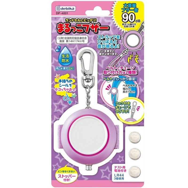 | 雨の日などでも持ち歩ける生活防水タイプの防犯ブザーです。ピンをなくさないストッパー付き。フック付チェーンとベルトでランドセルやカバンにしっかりと装着できます。ベルトは取り外し可能。 |