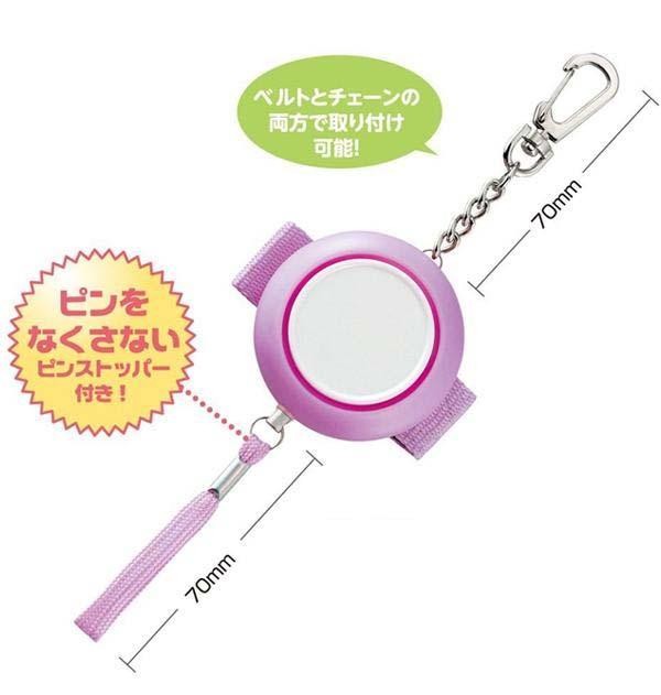 雨の日などでも持ち歩ける生活防水タイプの防犯ブザーです。ピンをなくさないストッパー付き。フック付チェーンとベルトでランドセルやカバンにしっかりと装着できます。ベルトは取り外し可能。 |