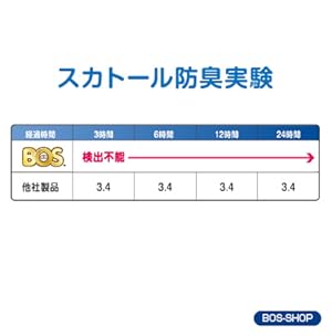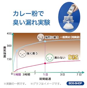 BOSは、高感度センサーの測定限界値(0.04ppm)以下で検出不能!一般素材との防臭力の違いは明らかです。