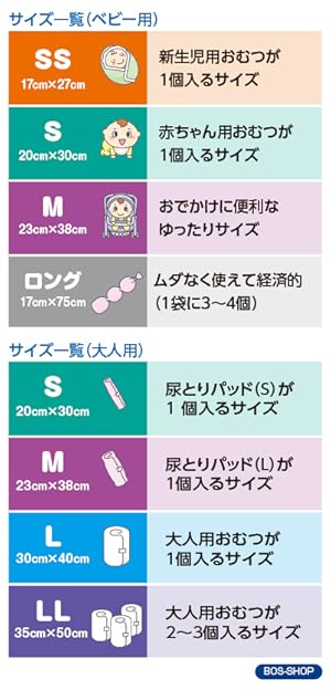 袋サイズは「SS、S、M、L、LLサイズ」となります。
