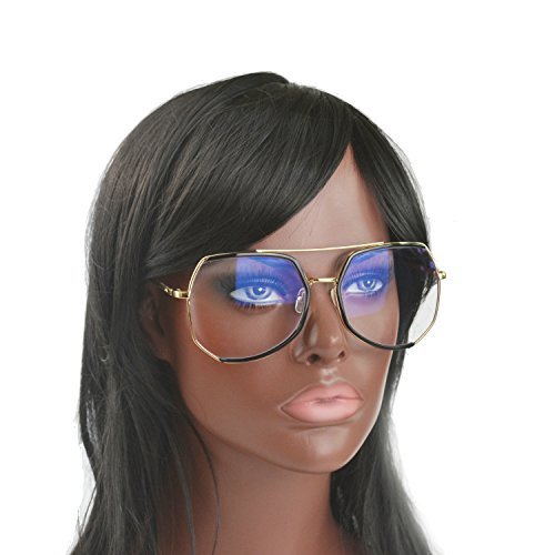 MINCL/Geometric Frame Sunglasses Double Metal Bridge clear lens Sunglasses