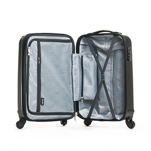 -. Feature : EXPANDABLE: the 'Torrino II' carry-on lage has a large main compartment that expands up to 2 inches, maximizing space and packing flexibility / COMBINATION LOCK: mounted combination lock for extra security / FULLY FEATURED INTERIOR: 2 zippered accessory pockets, criss-cross elastic tie down straps, and a zippered divider that creates 2 packing compartments for packing convenience / SPINNER WHEELS: 4 spinner wheels that rotate 360 degrees for incredible maneuverability and mobility / MODERN DESIGN: easy grab top handle, push button, self-locking, heavy duty handle system, and your choice of color provide ultimate comfort and style