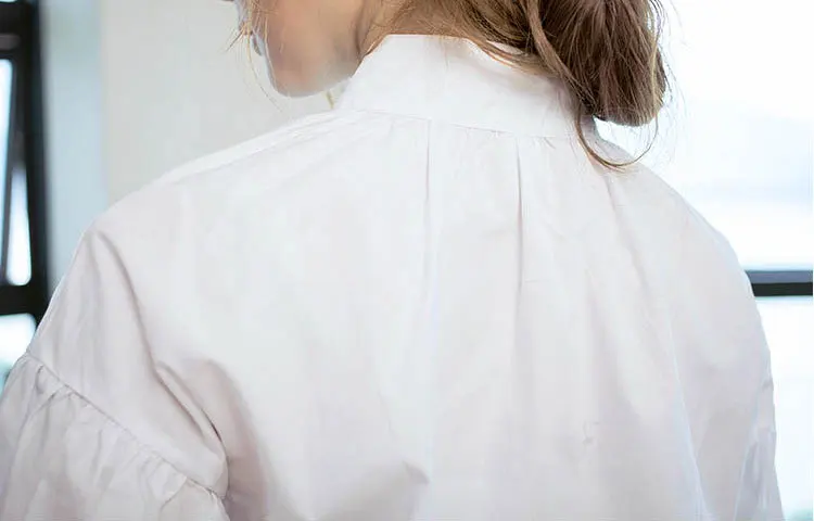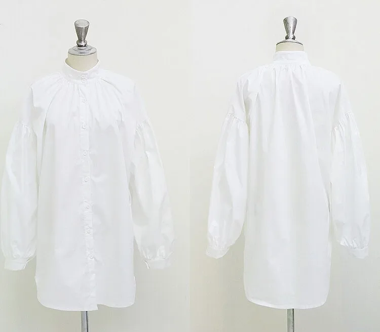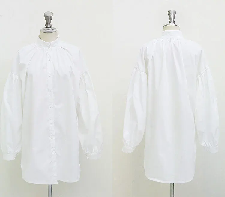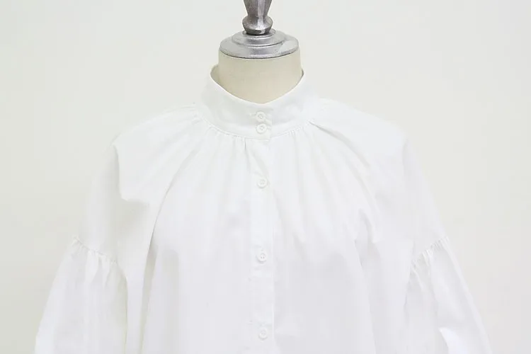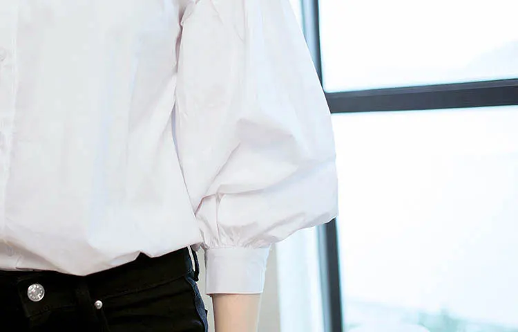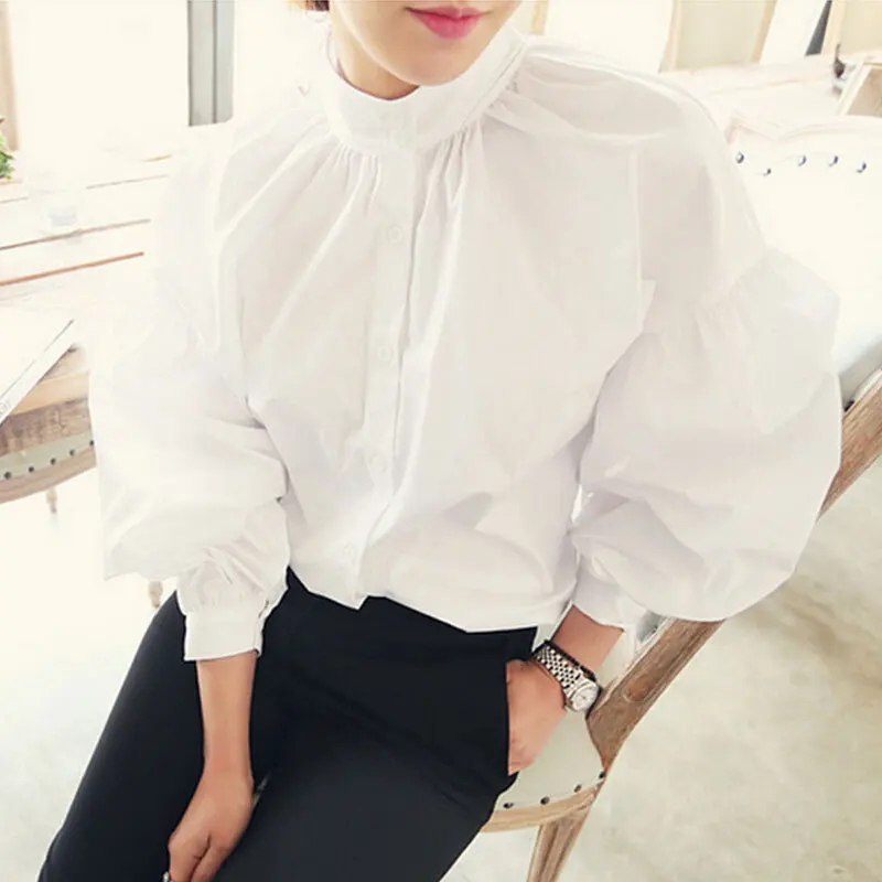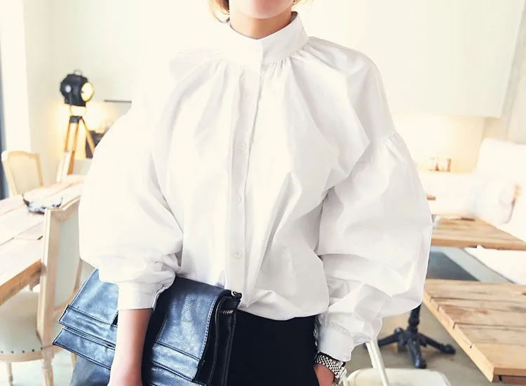 White Shirts:Women Lantern Sleeve Shirts