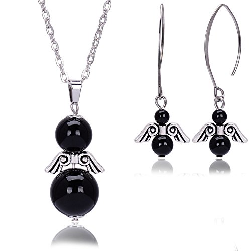 -. Feature : Angel Necklace Earrings Set,Necklace Length:31.5"+2" Extend Chain.Pendant Size:1.3"x0.8".Earrings Drop Size:0.5"x0.6".Weight:34g. / Popular Angel Jewelry Set,Here Are 4 Colors In:Lapis Lazuli,Turquoise,Green Aventurine And Black Agate.Metal in Antique Silver. / High Quality Polished Finish And Top Materials,Affordable P.R.Ice,Stylish New Designed Jewelry.Very Beautiful And Unique. / Completely Handmade Jewelry In Simple Design,Quantity Is Limited.All Materials Are Nickle/Lead Free,Hypoallergenic. / Support 30-day Money Back Or Exchange,Come With A Black Gift Pouch.Welcome To Contact Us For Any Questions.
