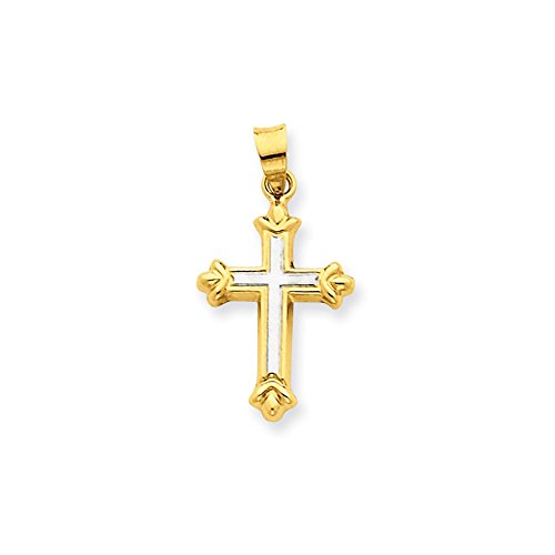 -. Title : 14k with Rhodium Hollow Cross Pendant