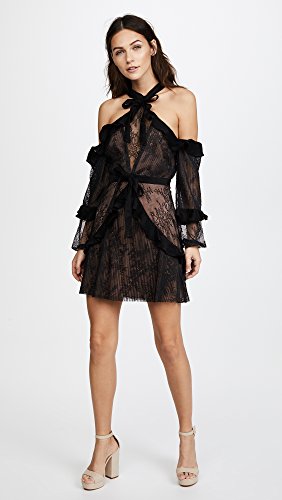 For Love & Lemons holiday '17 collection. Gorgeous lace and pleated lace mini dress featuring contrast georgette soft ruffles and bows.
