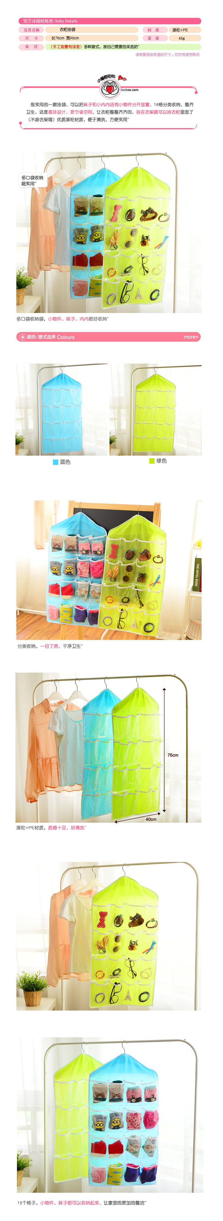 新款特价透明16格收纳挂袋墙挂式饰品储物袋多层杂物收纳袋