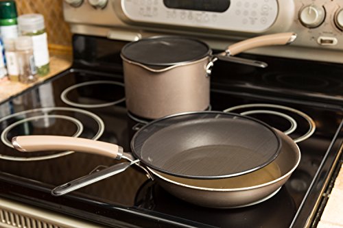Studio : MBR Industries Publisher : MBR Industries Product Description Bene Casa BC-43850HD Splatter Shield 3-Piece Set Black. Prevents grease and hot liquids from splattering on you. Features a stay-cool handle. Can be used to drain, strain and rinse food from both pots, bowls and pans as well. Size variety helps fit all pots and pans. 8", 10", 12" diameters included 0