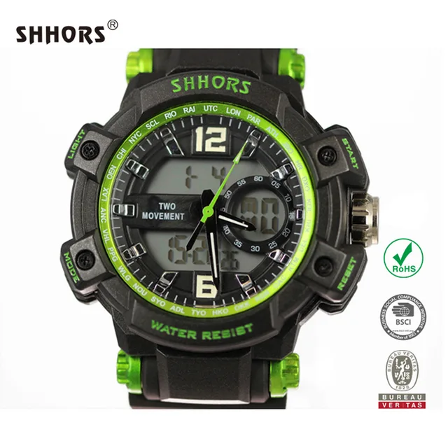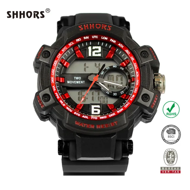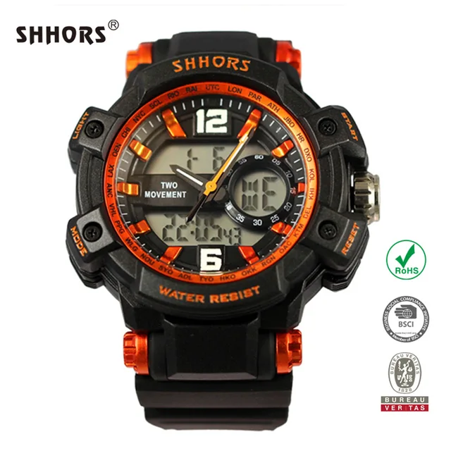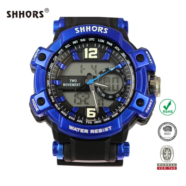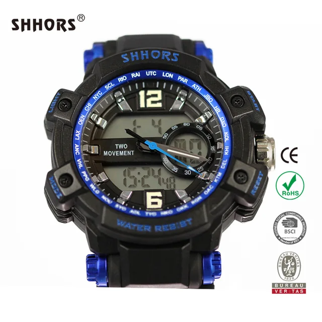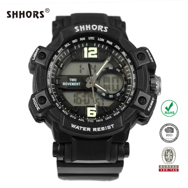 | [해외] 2017 패션 디지털 시계 남성 아날로그 듀얼 디스플레이 시계 shhors 방수 다이빙 relogio masculino |