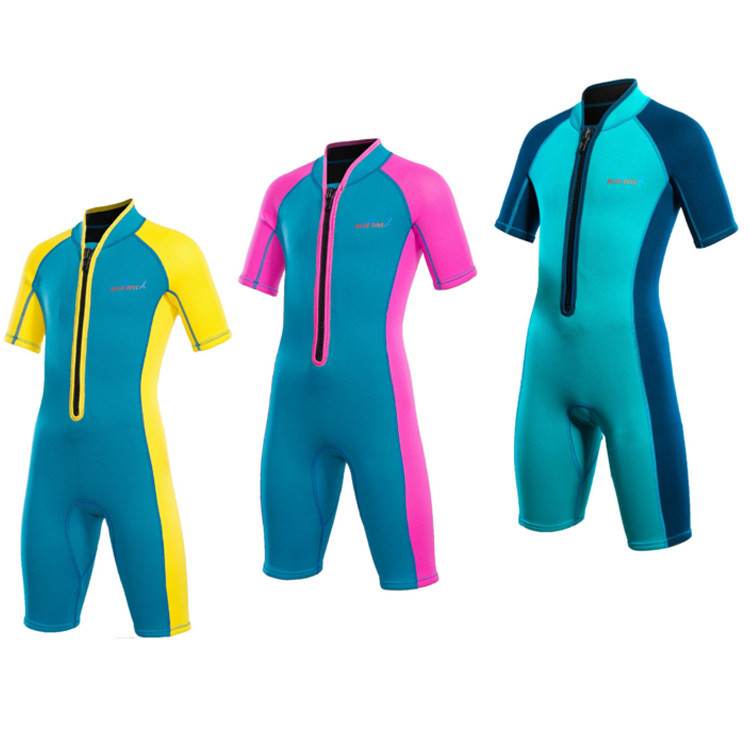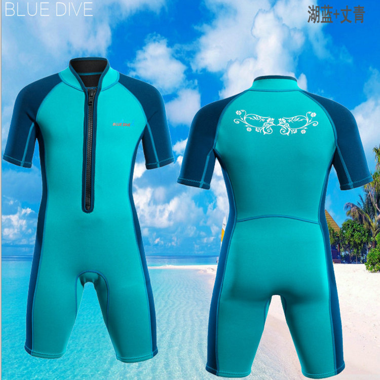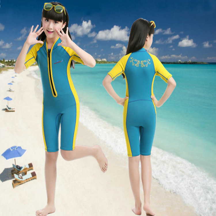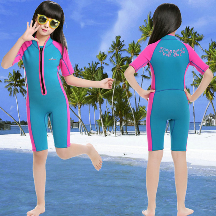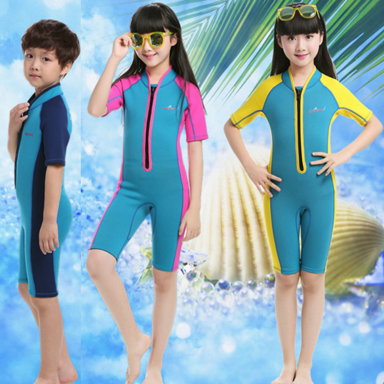 2mm潜水服儿童男童女童短袖连体冬泳保暖服防晒泳衣水母衣游泳衣