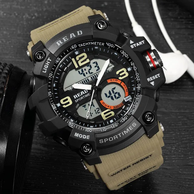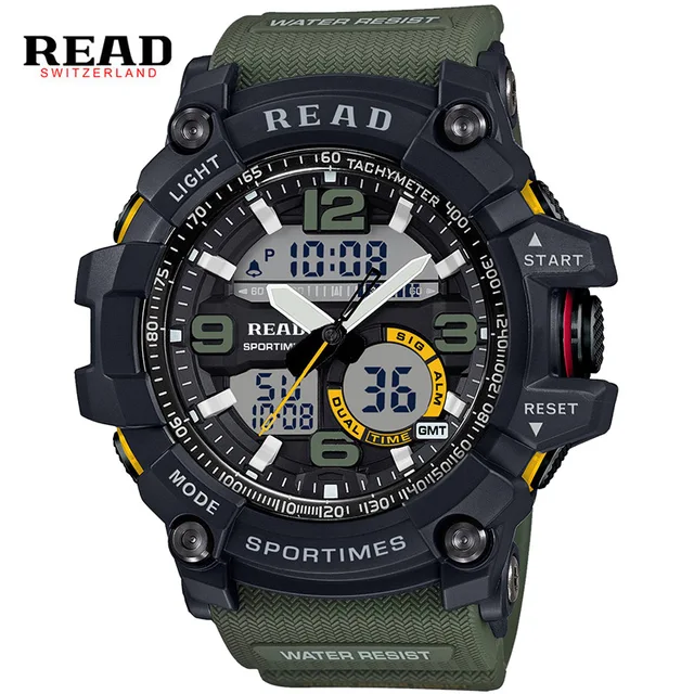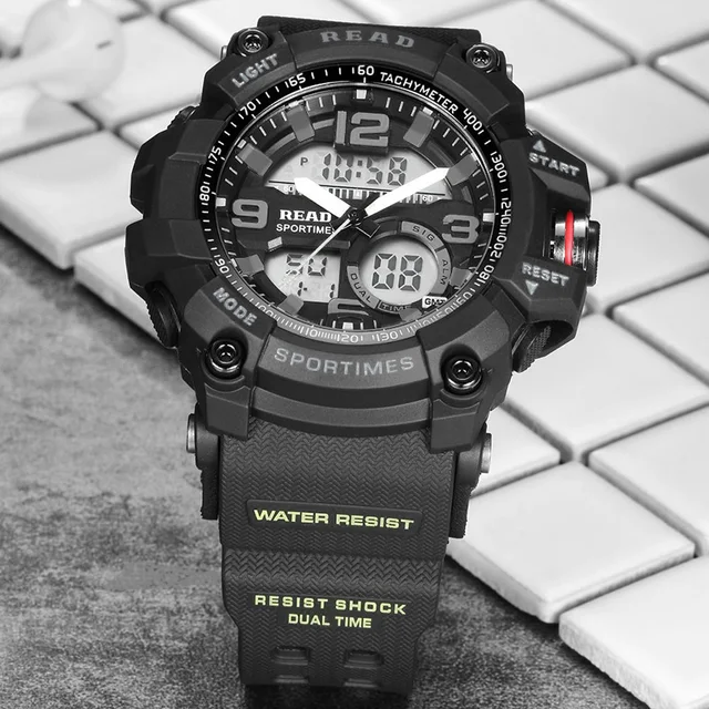| [해외]읽기 스포츠 군사 육군 시계 남성 다이얼 큰 디지털 규모 버클 Relogio 실리콘 스트랩 다시 빛 알람 시간 스톱워치 |