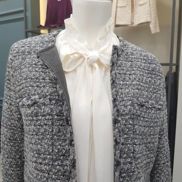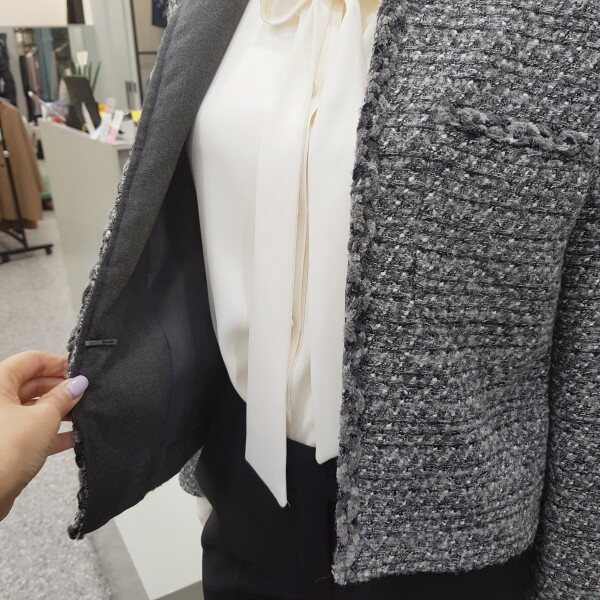 고급스런 모 알파카혼방소재의 심플한 트위드 자켓입니다. 여기저기 코디하시기 좋은워너비 자켓~