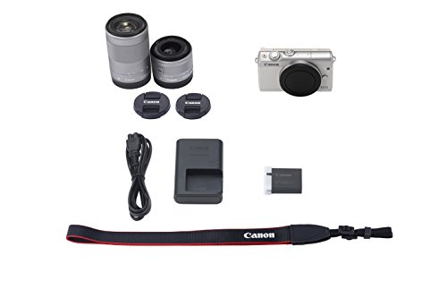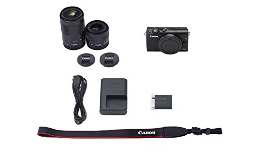 Lieferumfang : EOS M100 Gehause; Kamera-Gehausedeckel R-F-4; EF-M 15-45mm f/3.5-6.3 IS STM; Objektivdeckel E-49; EF-M 55-200mm f/4.5-6.3 IS STM; Objektivdeckel E-52 II;