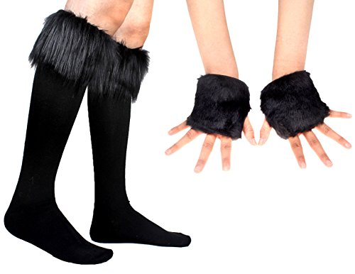Binding : Apparel Product Description Warm Faux Fur Leg warmers and Gloves are a must have winter accessory,it is available for adult/girls/teenager,it is used to thigh as a warmer for your leg and hand,or over your shoe for a boot,make you leg looks more slim and keep warm And it is also a good gift to your family or friends for Christmas,brithday,fashional and Halloween cosplay and cold weather Touch Feeling:Soft and comfortable,washable Suit for seasons: Spring,Autumn,Winter Easily scrunched into your legs Easily scrunched into boots Fit it loosely and perfect for layering It is available When you wear shoes,boots,or wear it in leg directly Size:One Size Fits S to M Package Washing instructions:Do not wash, do not bleach, hang dry in the shade, professional dry 0