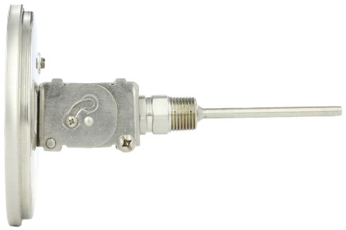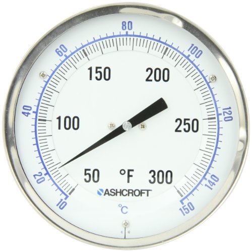 Ashcroft Series EL Stainless Steel Case Bimetal Thermometers, Silicone Liquid Fill, 5" Dial Size, 1/2" NPT Every angle Connection, 4" Stem Length, 0/200 Degrees Fahrenheit