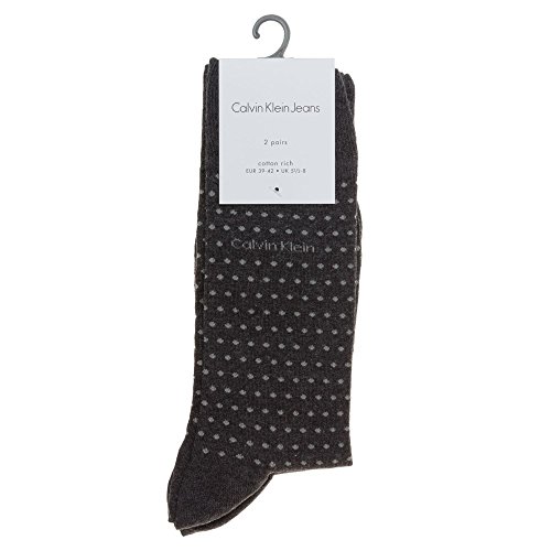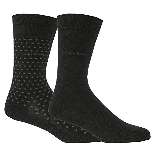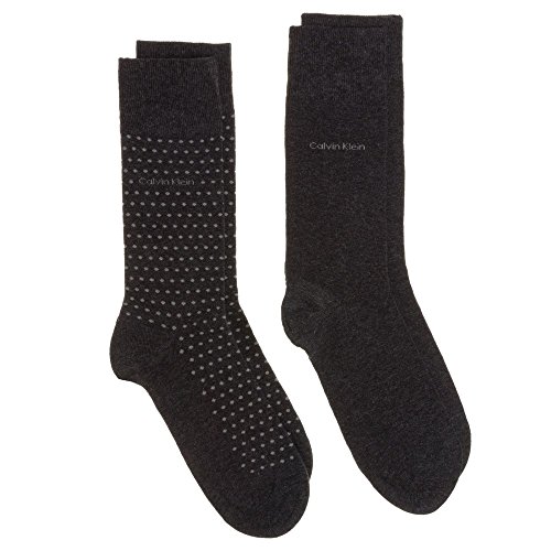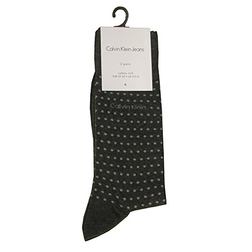 Studio : Calvin Klein Publisher : Calvin Klein Binding : Apparel Product Description Calvin Klein men's socks 2-pack, one pair in a dark grey with contrasting light dots pattern, the other pair in a solid dark grey. Fabricated from a brushed cotton rich blend giving them a fabulously soft handle and enhances the wear. Each has Calvin Klein branding interwoven into the mid ankle with a soft ribbed ankle cuff for a comfort fit.