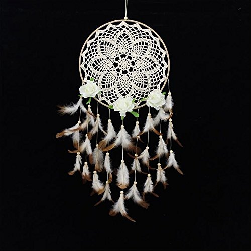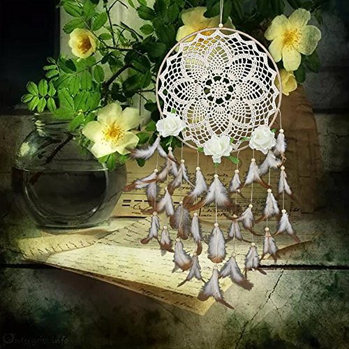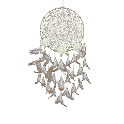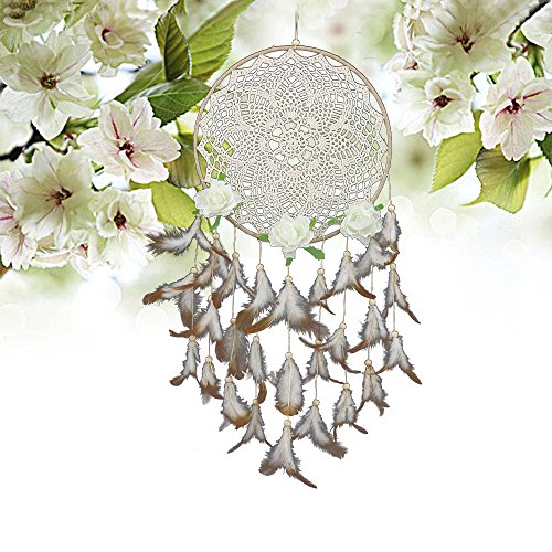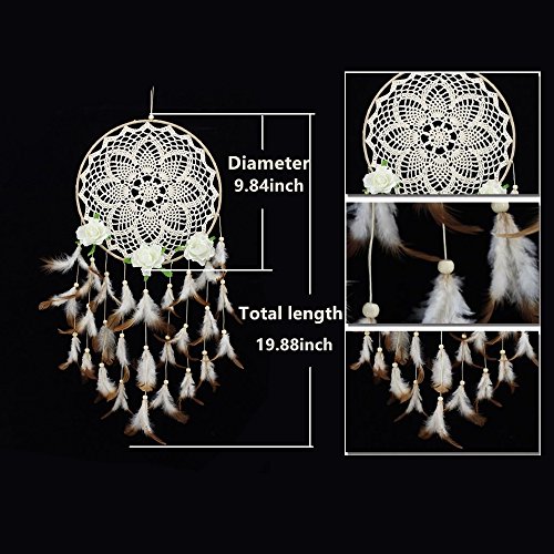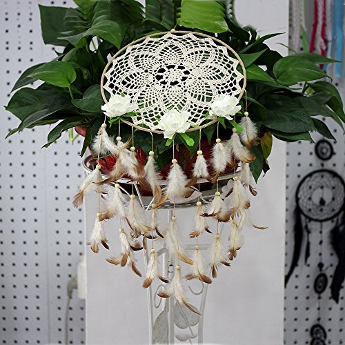 Dreamcatcher Material: feathers,Cotton,artificial flowers ; Beautiful Wall Art and Great Gift! Plus Peaceful Dreams