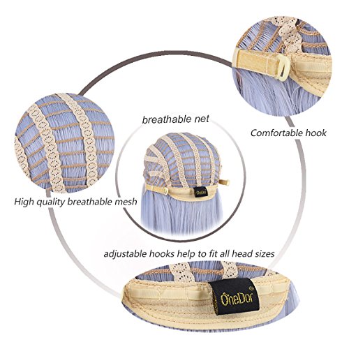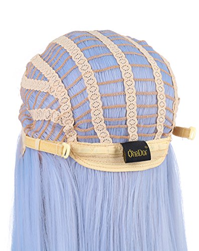 Onedor 31 Inches Silver Blue Straight Long Synthetic Hair Women Full Head Cosplay Wig with Wig Cap