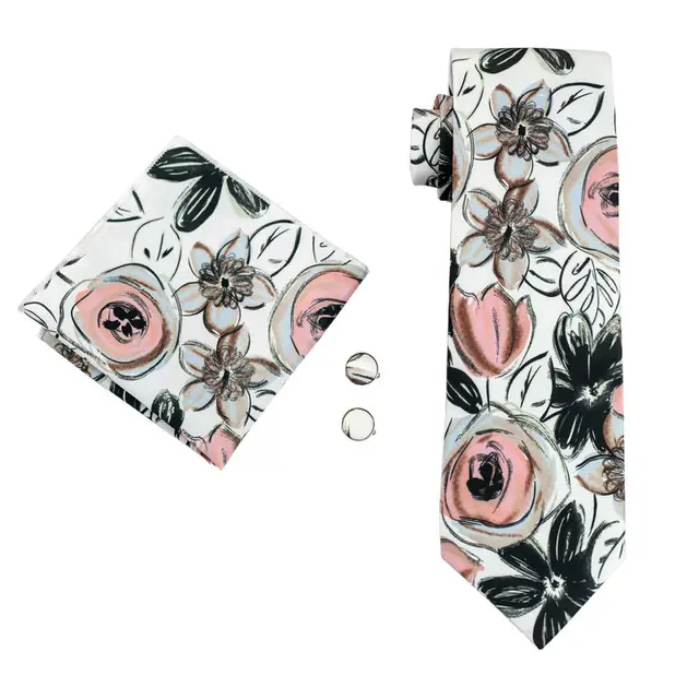 LS-1259 새로운 도착 여름 남성 넥타이 실크 꽃 고품질 브랜드 디자인 넥타이 손수건 커프스 세트 파티 웨딩
