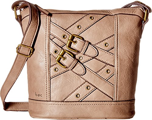Top zip clsoure. Adjustable crossbody strap. Exterior features decorative strap and buckle detail at front, zip pocket at back, antique hardware, and tonal stitching. Flat, branded base. Lined interior flaunts back wall zip pocket and two slip pockets. Imported.