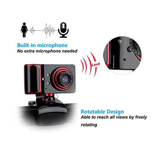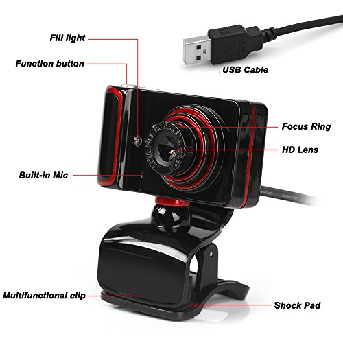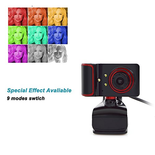 -. Feature : High Definition Images: Adopt optical nanometer lens and high resolution CMOS sensor, present clear and true video images to your family or friends in network conference /video chat. / Built-in Mic: Just a USB 2.0 interface, deliver video and audio at same time, get rid the trouble of traditional double USB and 3.5mm audio cable. Pick up sound in 10m/33FT. / 3 LED Night lights: Multi-functional webcam suitable for fill light when in insufficient light room to compensate brightness. 9 different Special Effects Available, what a funny webcam. / Manual Focus: Focus images by rotating lens, capture HD video and pictures. Plug and Play, easy to use, no driver needed. With adjustable clip, clip on the edge of your monitor steadily. / Strong Compatibility: Supports multiple instant messengers like Yahoo, MSN, Skype, etc. MacBook IOS, Windows XP x32/x64, Windows Vista x32/x64, Windows 7 x32/x64 compatible.