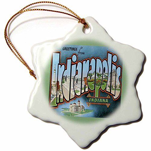 3dRose LLC orn_169882_1 Porcelain Snowflake Ornament, 3-Inch, "Greetings from Indianapolis Indiana Scenic Postcard Reproduction"