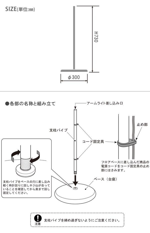 | サイズ | φ300×H730mm 個装サイズ:71×33×10cm |