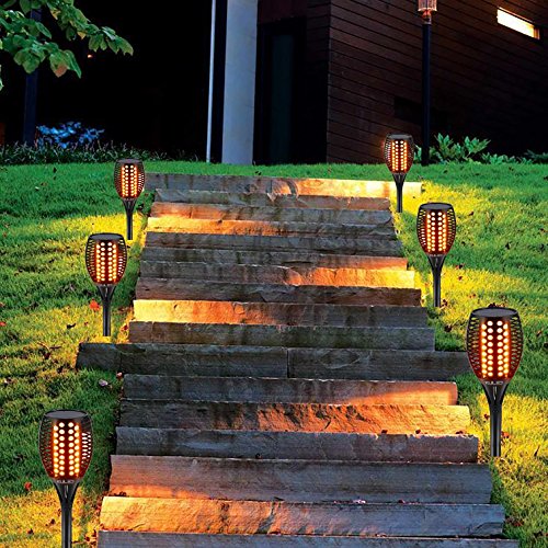Solar Garden Lights, Solar Powered Torch Light Outdoor Landscape Decoration Path Lighting Dusk to Dawn Auto On/Off with Realistic Flames and IP65 Waterproof Build Kuled K55 4pack
