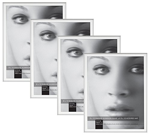 Framatic 8x10 Inch Fineline Aluminum Frame with 8x10 Inch Mat 4-Pack, Silver (302178)