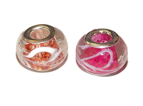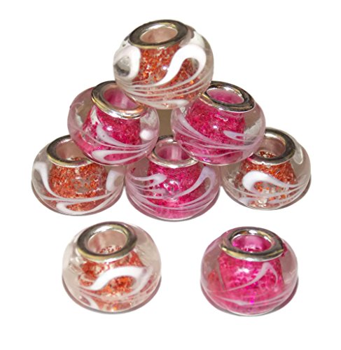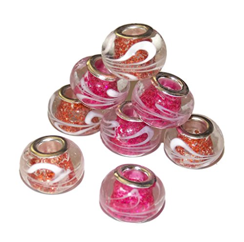 10 Pack Paracord Beads - Pink Mix Glitter Swirl Print Lampwork Beads by Midwest Cord TM - Compatible with Midwest Cord 550 Parachute Cord and European Style Bracelets - 5mm Big Hole Bead for Survival Bracelets